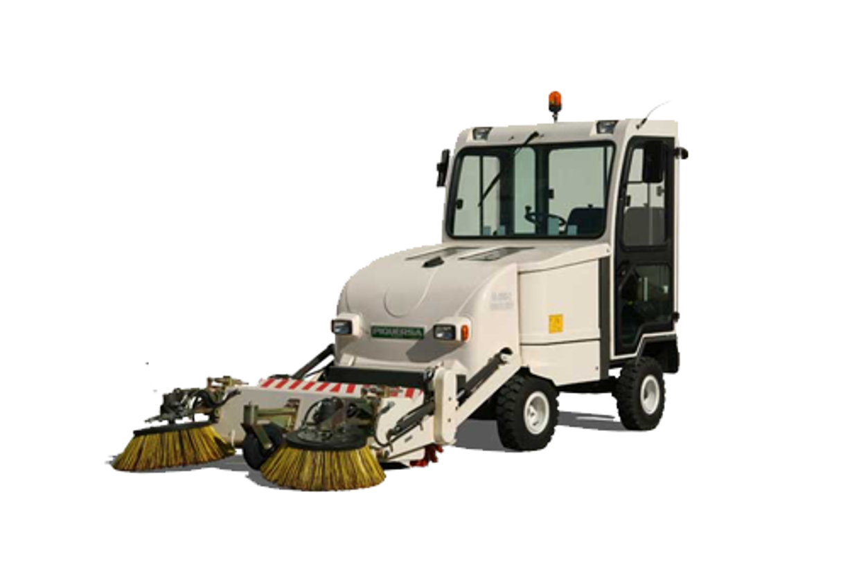 Selfloading sweeper. Hydrostatic transmision. Kubota V1505 diesel engine. Four cilindres. 35 H.P. Water cooled. Electrical start and stop. Hydraulic steering. Provided with three floating sweeper brushes and adjustable all of them for the wear: the central one of roller for the pavement and two lateral circular letters for the sidewalkers' borders. High lateral unload. Hooper capacity 750 L. Frontal pulverized water. Metallica cabin with two doors. Windscreen. Windscreen-wiper. Certified head lights. Flashing beacon. Hour meter. Audible reverse warning signal. Safety belt.